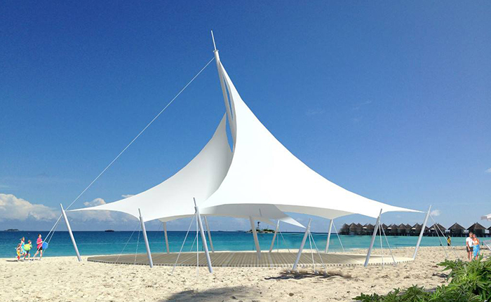 2、還需定期檢查張拉膜公司是否處在正常工作狀態(tài),如果發(fā)現(xiàn)膜面有破損應該及時由專業(yè)人員修復。 應該根據(jù)現(xiàn)場環(huán)境來選擇防腐措施和防腐材料。定期檢查支承結構、索(特別是那些深入固定端的)、夾板和螺栓連接等處的腐蝕情況。若有腐蝕發(fā)生,首先應除去腐蝕層,然后重新做好表面的防腐處理。若螺栓連接發(fā)生腐蝕,則應予以替換。